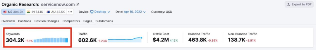 查看Organic Keyword Trend,了解谷歌排名算法在哪些方面進(jìn)行了更新,以及你的自然搜索關(guān)鍵詞數(shù)量在哪些方面發(fā)生了變化。