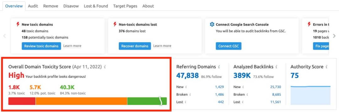 外鏈的質(zhì)量和數(shù)量對(duì)網(wǎng)站的SEO表現(xiàn)至關(guān)重要。有害外鏈(如可疑鏈接)可能導(dǎo)致谷歌對(duì)網(wǎng)站進(jìn)行懲罰,從而影響流量。通過Backlink Audit工具,可以分析外鏈的健康度,查看是否有有害鏈接需要?jiǎng)h除或拒絕。同時(shí),Lost & Found報(bào)告可以幫助你了解最近丟失的外鏈,以便及時(shí)采取措施補(bǔ)充高質(zhì)量的外鏈。有害外鏈(又稱可疑鏈接)的危害性足以導(dǎo)致谷歌處罰,它們可能是讓流量下降的原因。在Backlink Audit工具中分析你的外鏈健康度,從Google Analytics和Google Search Console提取數(shù)據(jù),與 Semrush的數(shù)據(jù)整合在一起。
