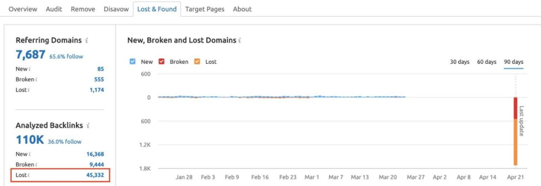 同時(shí)也可以在Lost & Found報(bào)告中查看你最近丟失的外鏈。