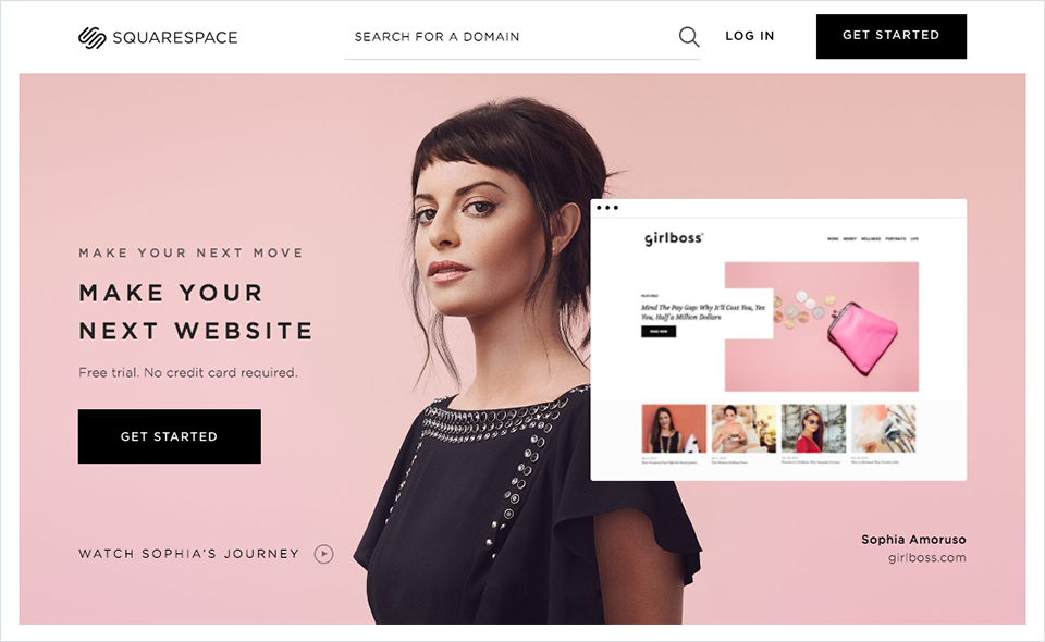 自助建站應用Squarespace用高清的客戶肖像圖配合產(chǎn)品界面,來表現(xiàn)他們的應用可以為不同人群定制專屬網(wǎng)站的理念: