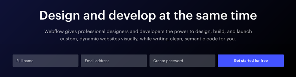 Webflow則直接把需要填寫的注冊項全列出來,這適用于注冊項在三個以內(nèi)的情況:
