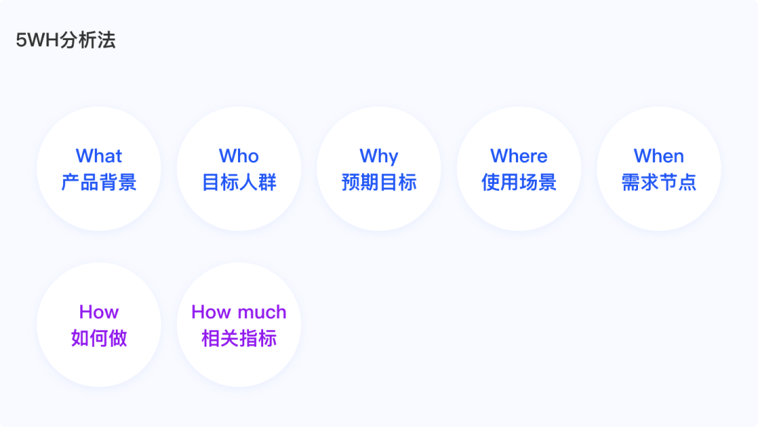了解背景通常是跟產(chǎn)品或者業(yè)務(wù)方去了解,可以借鑒5WH分析法深入了解需求。(5W1H分析法又成六何法、還有5W2H七何法、5W3H八何法)