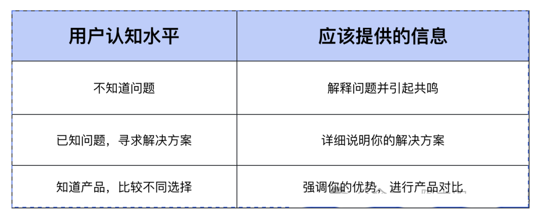 例如,如果用戶已經(jīng)知道自己的問題并在尋找解決方案,那么你只需詳細(xì)介紹你的產(chǎn)品如何解決問題。如果用戶不知道自己遇到了問題,你則需要先解釋問題。