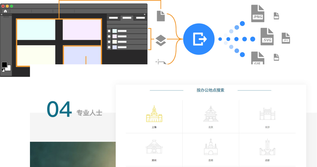 對(duì)于確定的網(wǎng)站風(fēng)格進(jìn)行導(dǎo)圖輸出,根據(jù)不同屏幕分辨率輸出不同的格式和大小,如圖標(biāo)可以考慮 PNG、JPG 加 2x 倍或 SVG 格式,圖片進(jìn)行不同尺寸輸出以適應(yīng)移動(dòng)化。最重要的是要保持素材資源的清晰程度。