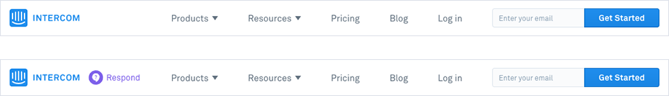繼續(xù)以Intercom為例,首頁導(dǎo)航在滾動時保持常駐。當點擊首頁導(dǎo)航到達子產(chǎn)品頁面后,導(dǎo)航保持一致,只是在原先的主LOGO旁多了一個子產(chǎn)品LOGO來表明當前所在頁面,點擊主LOGO可以返回首頁: